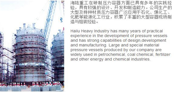蘇州海陸重工股份有限公司位于江蘇省張家港市開發(fā)區(qū),是國內(nèi)一流的節(jié)能環(huán)保設(shè)備的專業(yè)設(shè)計制造企業(yè),目前并已初步形成鍋爐產(chǎn)品、大型壓力容器、核電設(shè)備、低溫產(chǎn)品、環(huán)保工程共同發(fā)展的業(yè)務(wù)格局。公司創(chuàng)建于1956年,注冊資本51640萬元,占地面積近50萬平米。公司下設(shè)八個控股子公司,一個余熱鍋爐研究所,在瑞士、北京、武漢、南京、上海、杭州、廣州等地設(shè)立分支機(jī)構(gòu),擁有雄厚的研發(fā)實(shí)力。公司秉承“科技領(lǐng)航、業(yè)界先鋒”的發(fā)展理念,注重研究廢熱、余熱利用和環(huán)境保護(hù)相結(jié)合的新技術(shù)研發(fā),自主設(shè)計能力居同行前列;公司承擔(dān)過國家863計劃,江蘇省科技成果轉(zhuǎn)化專項(xiàng)資金,榮獲國家科技進(jìn)步二等獎,產(chǎn)品擁有核心自主知識產(chǎn)權(quán)并取得專利50多項(xiàng);公司推行國際先進(jìn)的管理體系標(biāo)準(zhǔn)和認(rèn)證,擁有 A級鍋爐制造許可證,A1、A2、A3級壓力容器設(shè)計和制造許可證,取得了民用核承壓設(shè)備制造資格許可證、美國機(jī)械工程師學(xué)會(ASME)“S”、“U”鋼印,通過了ISO9001質(zhì)量體系認(rèn)證、健康體系認(rèn)證和14000環(huán)境體系認(rèn)證;公司設(shè)備先進(jìn),裝備精良,專業(yè)嚴(yán)謹(jǐn)?shù)闹圃炖砟畲蛟斐銎焚|(zhì)非凡、質(zhì)量一流的“海陸”品牌聲譽(yù)。